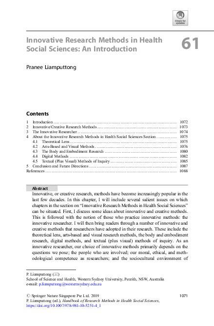 Read Innovative Research Methods in Health Social Sciences Audio CD ManyBooks